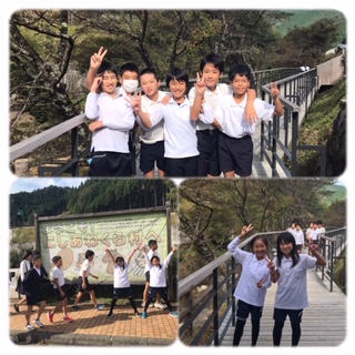 あわくランドに到着しました。秋晴れの爽やかな風吹いて最高の修学旅行です。トイレ休憩をして鳥取へレッツゴー!