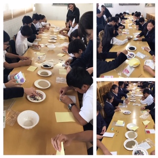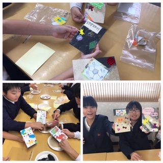 修学旅行の思い出に砂絵のハガキを作成しました。想像していた以上に素敵な絵ハガキができました。