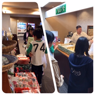 買い物と入浴タイムです。フロントでは、梨が100円で売り出されていました。お小遣いの金額と相談しながら、お土産を買います。