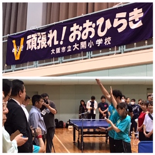 11月4日、福島区PTA卓球大会が福島区スポーツセンターで開催されました。開会式では、本校の安田さん河田さんが代表で素敵な選手宣誓を行いました。大開小学校の3チームが参加します。優勝に向けてファイト!大開小学校教職員を代表して勝田先生が出場されました。