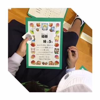 11月7日、講堂で児童朝会を行いました。児童委員会のクイズを縦割り班で協力し合い答えていました。また、11月1日に行われました全校遠足のウォークラリークイズで優勝・準優勝した班に表彰状と大開小学校創立99周年記念バッチシールを授与されました。