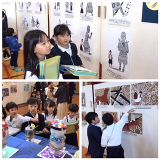 11月16日、土曜参観を開催しました。たくさんの保護者の皆さんが授業参観に来校してくださいました。講堂や各教室では児童の作った作品が展示され、児童のみなさんも他学年の作品を見学しました。