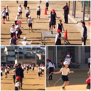 今週11月18日から22日まで短縄週間です。全校児童が縄跳びを持って、休み時間に、前とび 後ろとび かけあしとび などに挑戦しています。風邪などひかないように、しっかりからだを鍛えます。