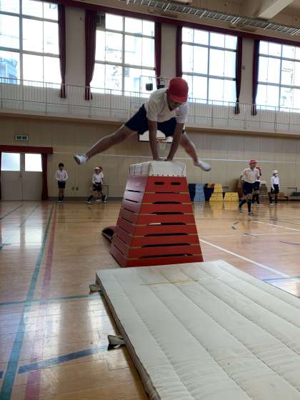 グループに分かれて、自分の練習してる技に挑戦しました!