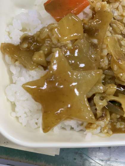 今日は、カレーの中に、ラッキー人参や星型の大根がありました!