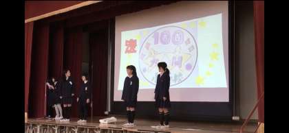 本日、朝の時間に創立100周年記念バッジイラスト発表会を行いました。