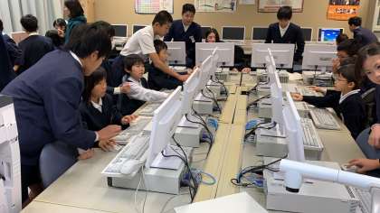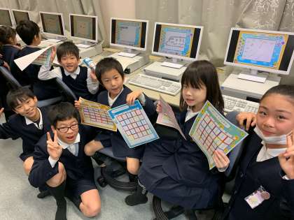 6年生が1年生にパソコンを使って時間割の作り方を教えました。1年生は、初めてのパソコン室でわからないところもありましたが、6年生が優しく教えることができました!