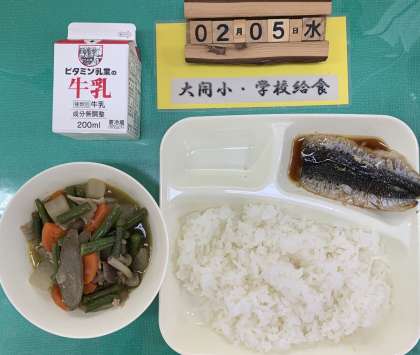 2月5日水曜日の学校給食です!今日は、節分献立で、いわしと福豆がついています!
