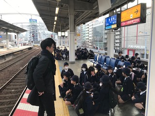 6年生は、卒業遠足をスタートしました。野田阪神駅から甲子園駅まで電車に乗って移動して、キッザニアに向けてレッツゴー。