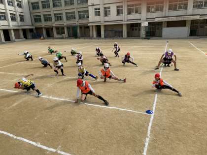 今日は、5年生の体育で、タグラグビー をしました!寒さにも負けず、元気に子供たちは、授業に取り組んでいました。
