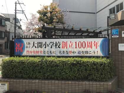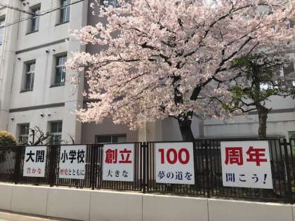 令和2年度 大開小学校創立100周年がスタートしました。大開小学校正門前に「豊かな歴史とともに 大きな夢の道を開こう!」のテーマが書かれた大阪市立大開小学校創立100周年記念の横断幕が掲げられました。4月7日には、新1年生をお迎えする入学式が行われます。新1年生の皆さん、元気な笑顔で登校してください。待っています。