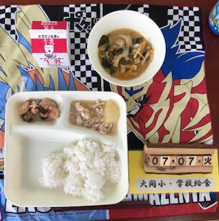 本日の給食は冬瓜の煮物、鮭のつけ焼き、味噌汁です。