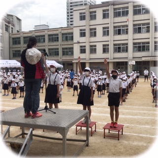 全校児童で運動会集会を行いました。児童代表の宣誓や校歌の