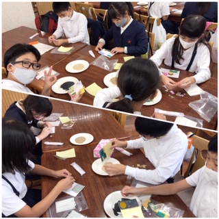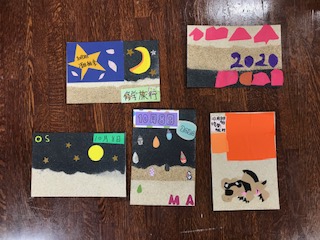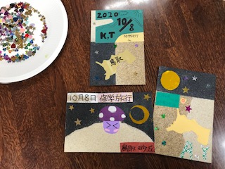 砂丘会館で鳥取砂丘の砂を活用して創作ハガキを作りました。世界に一つだけのハガキです。