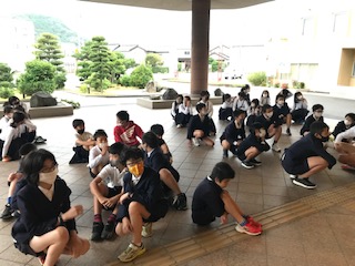 爽やかな朝です。台風の影響で少し風があります。全員元気に『おはようございます』