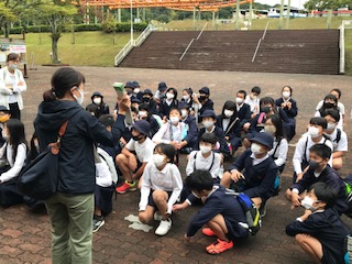 山内先生から姫路セントラルパークでの注意事項を説明しています。注意事項を守って、楽しみましょう。
