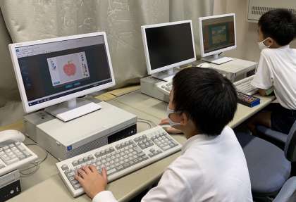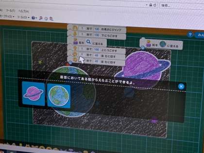 パソコンクラブでは、プログラミングをしていました。好きな背景やものを選んで動かす設定をし、再生しました。