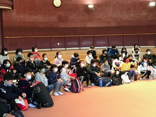 大阪府自然の家に到着しました。入所式を集会所で行いました。