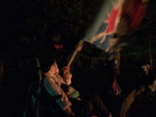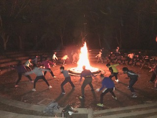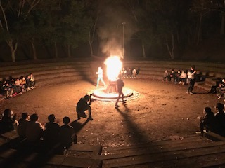 キャンプファィアーで盛り上がっています
