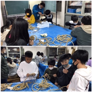 クラフト室で、縄クラフトの作成を行いました。初めての経験でなかなか思うように出来ませんでしたが、集中して取り組むと縄クラフトが出来ました。