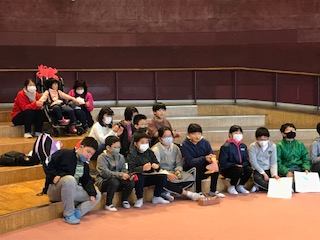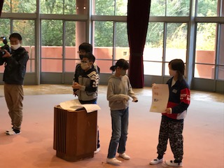 オリエンテーションホールで各活動班に分かれて、レクレーションを行いました。みんなの前では、緊張して思うように発表するのが難しいですが、班で協力し合い頑張ります。