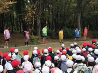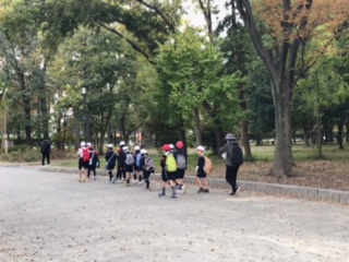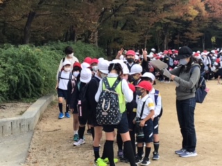 創立100周年記念の全校遠足がスタートしました。にこにこ班に分かれて大阪城を散策します。