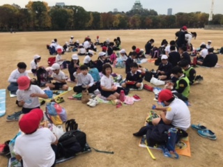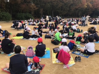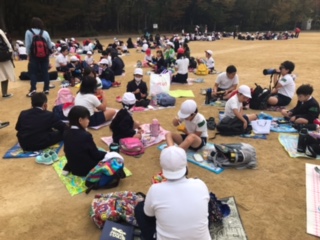 全校遠足の昼食タイムです