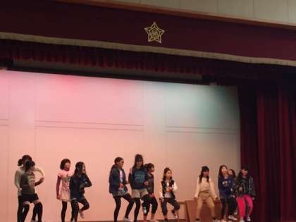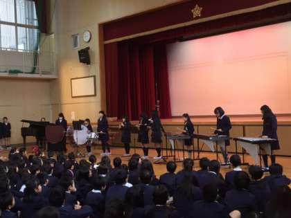 今日の集会はダンスクラブと音楽クラブの舞台発表でした。