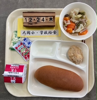 今日の給食は、豆腐ハンバーグ、カリフラワーのスープ煮、固形チーズです。