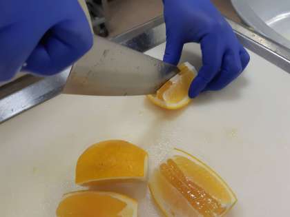 みんなが食べやすいように、切れ込みをひとつづつ入れます。