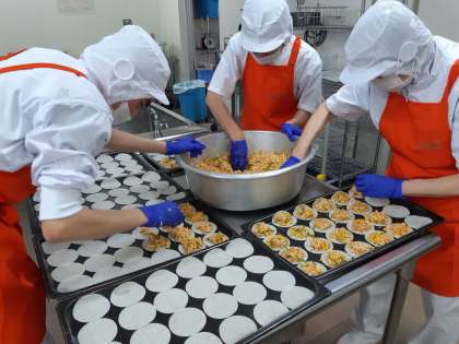 給食室内で、実際に作られている様子の写真を載せさせていただきます。