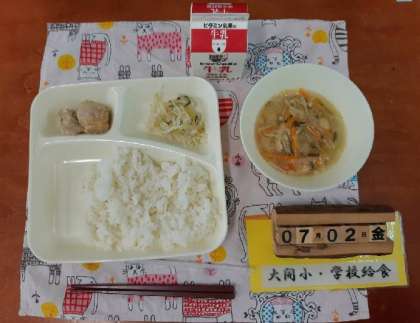 鶏肉のしょうゆマヨネーズ焼き、五目汁、切干しだいこんのゆずの香あえ、ご飯、牛乳です。