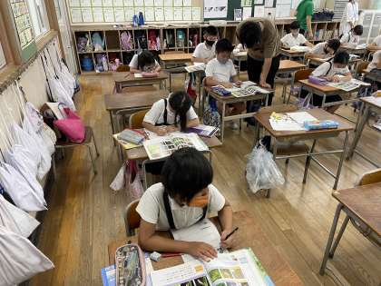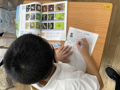 理科の学習では、「こん虫はどんな育ち方をするのだろうか。」という課題について、調べ学習を進めていました。子どもたちは、調べた内容を、絵と文で丁寧にかいていました。