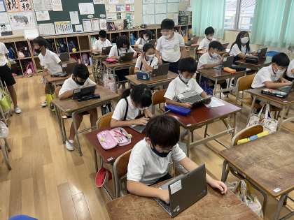 また、ICTを活用した学習では、操作方法について、子どもたち同士でも教え合いながら主体的に取り組んでいました。