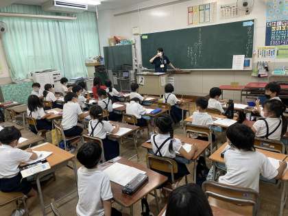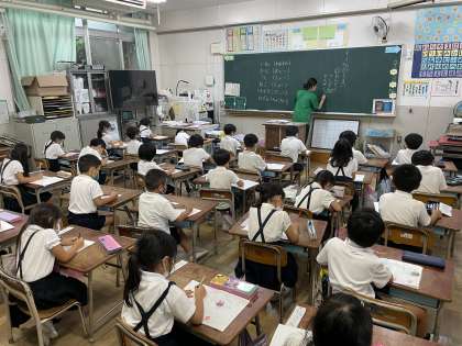 1年生にとって、黒板の文字を視写することはとても難しいことですが、どの子も先生の言うことをしっかり聞き、良い姿勢で頑張って視写していました。