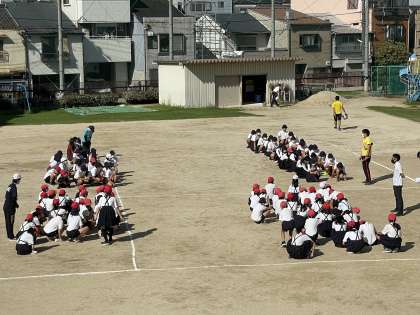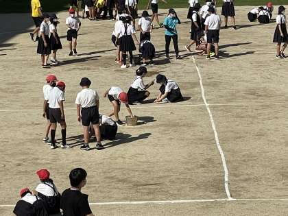 運動会へ向けて、石ひろいを実施しました。児童のみんなが安全に練習することができるように、運動場全体に広がり危険な石が落ちていないか、真剣に探しました。