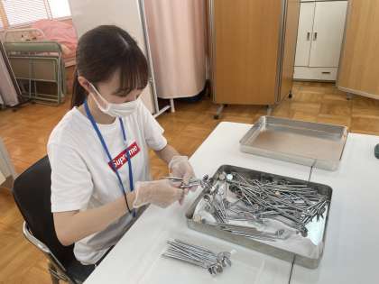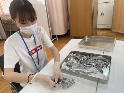 歯科検診の準備をしています。「デンタルミラー」という口の中がよく見える鏡をきれいに整えています。
