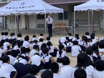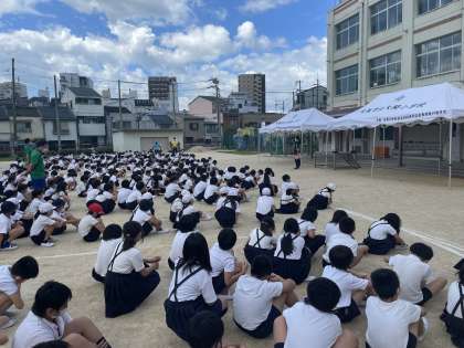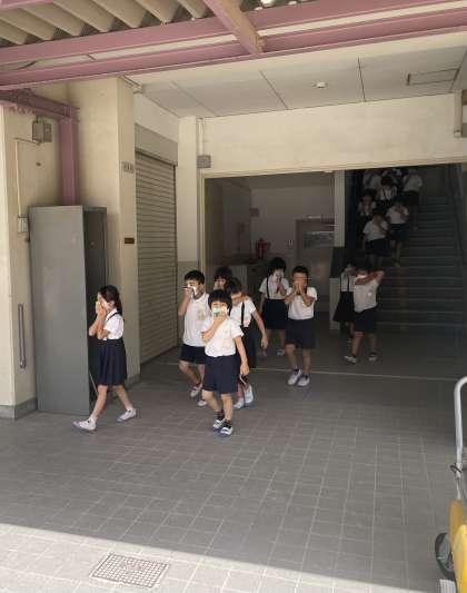 避難開始から、3分以内に全員が運動場に集合することができました。子どもたちは、実際に火災になったことを想像しながら、迅速に行動することができました。