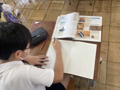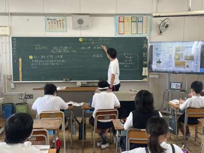 社会科では、武士の政治のはじまりについて学習しました。子どもたちは、教科書や資料をもとに、平清盛を中心とした平氏が源氏をおさえ、貴族の藤原氏にかわって政治を行うようになった過程を調べました。