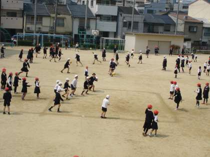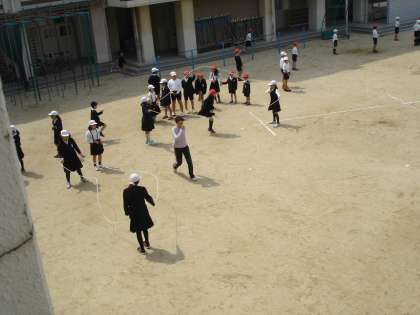 休み時間の運動場はたくさんの楽しそうな子どもたちでいっぱいでした。