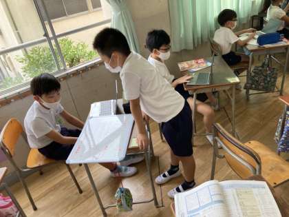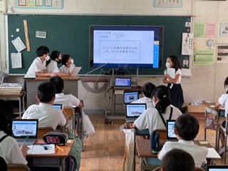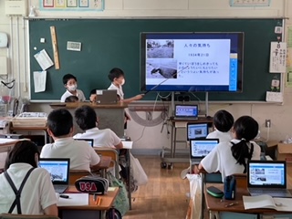 「発表ノート」というプレゼンソフトを使って、大阪で起きた風水害について調べたことを発表しました。