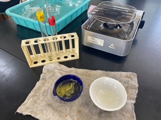 食塩水・炭酸水・うすい塩酸・重そう水・うすいアンモニア水の5種類の水よう液を用意し、におったり、リトマス紙で色の変化を観察したり、蒸発させたりしながら、それぞれの水よう液の性質について調べました。