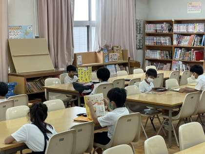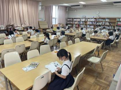 国語の時間に、図書室で読書をしました。