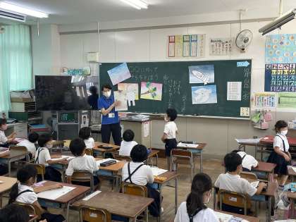 図工では、「〇〇にのって」という題で、子どもたちは想像をふくらませながら楽しい雰囲気で絵を描いていました。