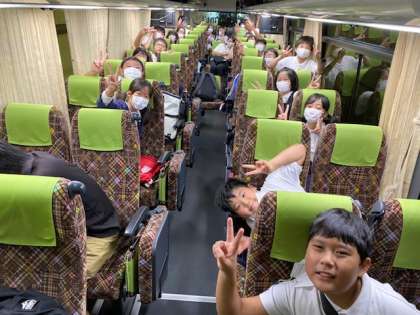 子どもたちは、水明荘さんに見送られながら、姫路セントラルパークに向けて元気に出発しました。