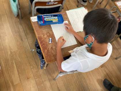 「ビーバーの大工事」のまとめをしました。子どもたちは、どうぶつのひみつカードを参考にして、ビーバーのひみつについて、まとめる作業をしました。順序に気をつけながらまとめ、友だちとは、お互いのまとめ方や発表のしかたのよかった点について交流しました。
