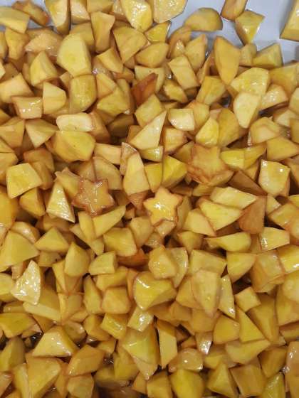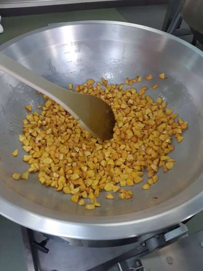 大学いもは、旬のさつまいもを油であげ、砂糖、塩、こいくちしょうゆで作ったみつをからめています。