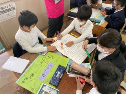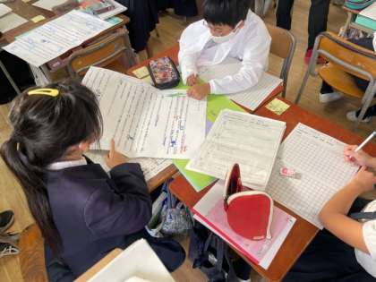 国語の「くらしの中の和と洋」で、今までの学習を生かし、自分たちのくらしの中にある和と洋を題材にして、作文をしました。内容の中心を明確にし、段落相互の関係に注意して文章の構成を考えて書くことができました。