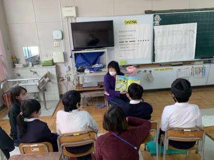 絵本では、次々と変わる雄鶏の鳴き声に、児童たちも大はしゃぎでした。