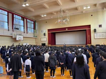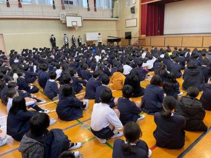 校長先生からは、2学期を振り返りながら、優しい気持ちや思いやりを行動に表すことの大切さについて話がありました。